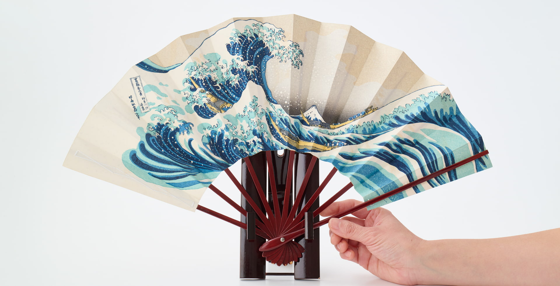 Ukiyoe, woodblock print of a fan, Fugaku 36 Keikyo (Thirty-six views of Mt. Fuji), Hokusai, Kanagawa-oki Namiura