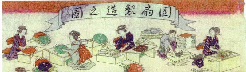 Des artisans qualifiés dessinent des lignes sur l'éventail sur du papier japonais teinté dans des couleurs soigneusement sélectionnées.